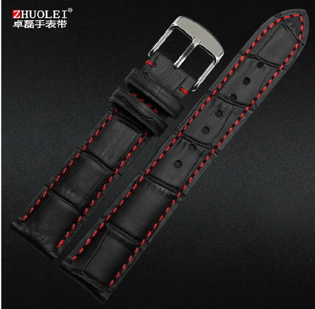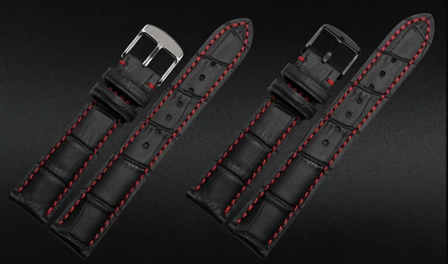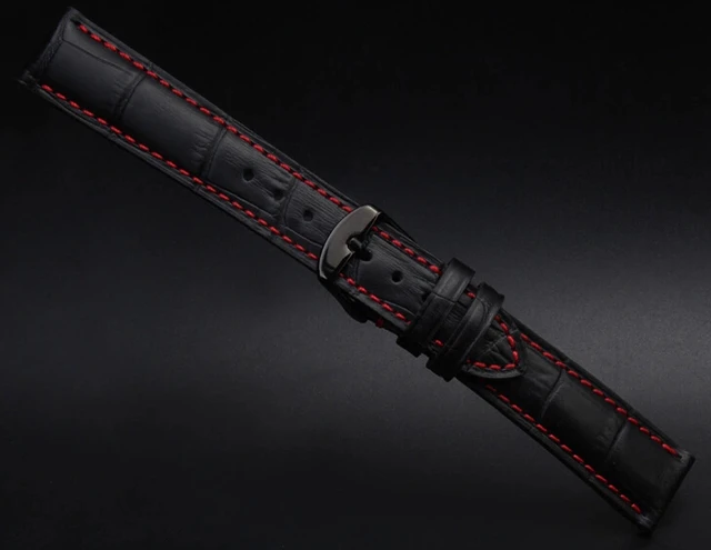 | [해외] 18 미리메터 19 미리메터 20 미리메터 21 미리메터 22 미리메터 23 미리메터 24 미리메터 새로운 블랙 정품 가죽 손목 시계 밴드 스트랩 팔찌 레드 스레드 |