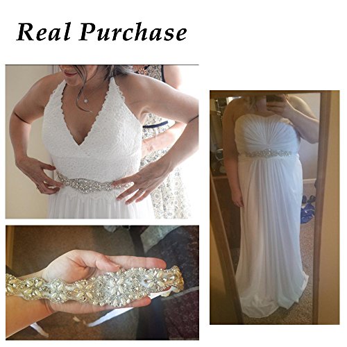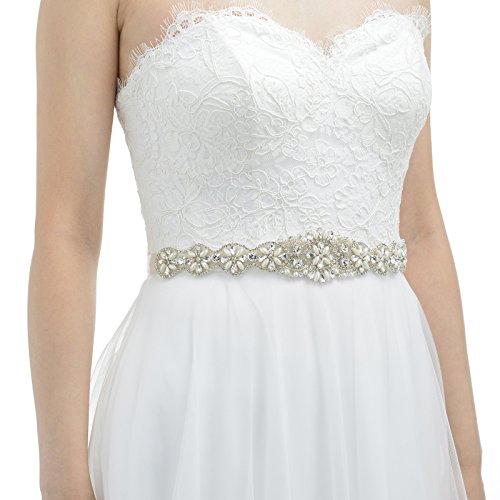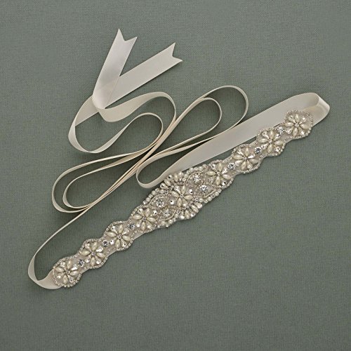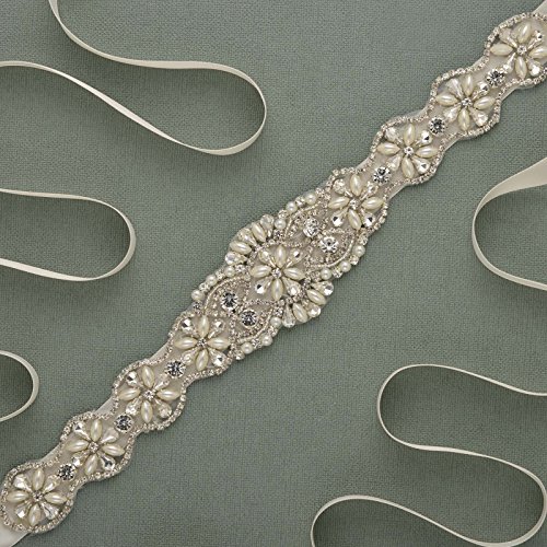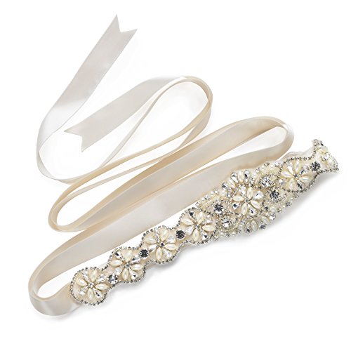 SWEETV Rhinestone Wedding Belt Applique Beaded Bridal Sash for Dress Accessories, Ivory