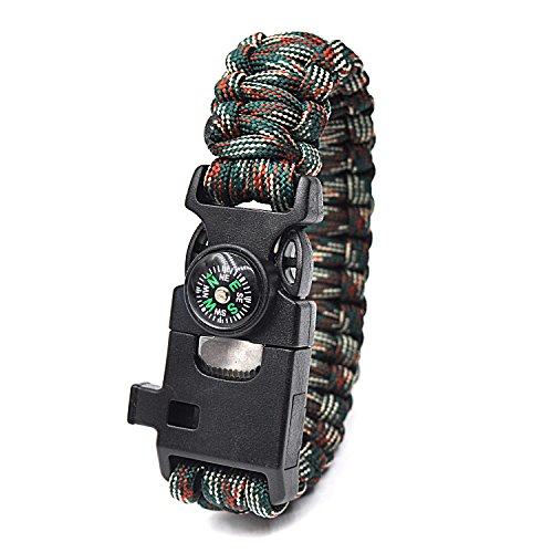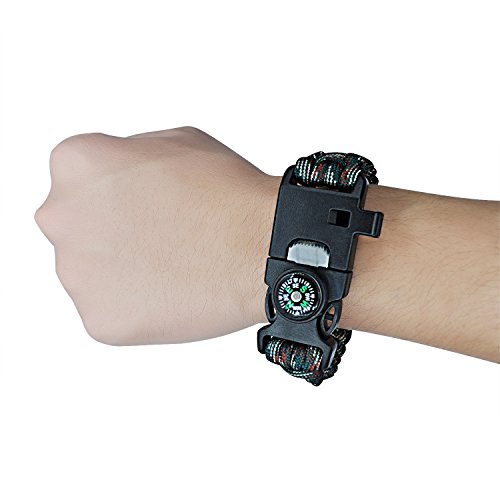 HZJC Survival Bracelet - Hiking Multi Tool,Fishing, Emergency Whistle, Compass for Hiking, Camp Fire Starter 5-in1 Set