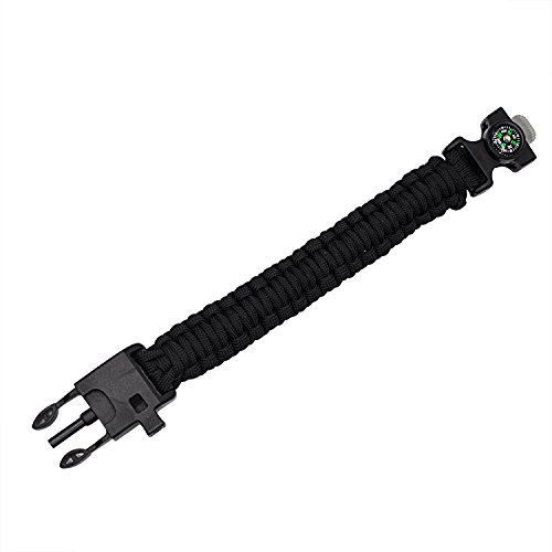 - PREMIUM BY DESIGN. Bracelet survival multi tool with heavy duty rock climbing rope, self-defense whistle, magnesium fire starter, & compass. Compass is attached and will not fall off! Compass acts as "LOCKING MECHANISM" for buckle.