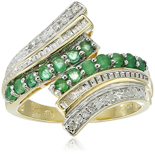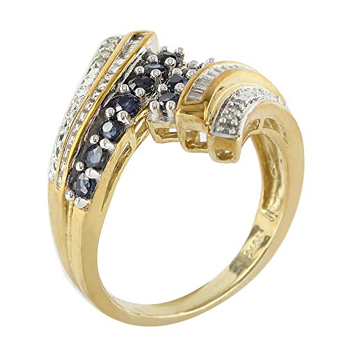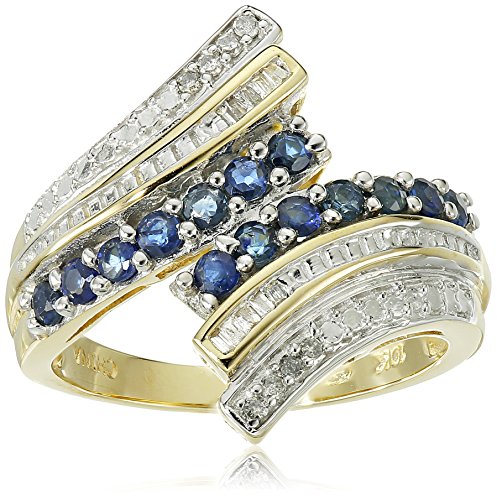 10K Yellow Gold Genuine Sapphire and 1/10 cttw Diamond Ring