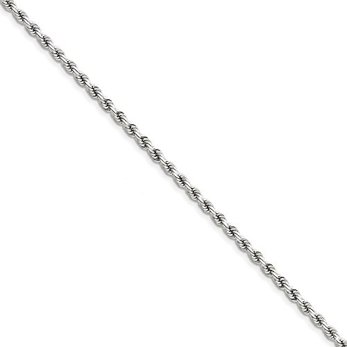 14k White Gold 3.5mm D/C Rope Chain. Material: Primary - Purity:14K|Finish:Polished|Plating:Rhodium|Chain Length:9 in|Chain Type:Rope|Chain Width:3.5 mm|Clasp /Connector:Lobster|Feature:Solid|Material: Primary:Gold|Product Type:Jewelry|Jewelry Type:Anklets|Sold By Unit:Each|Bracelet Type:Chain Styles|Anklet Type:Chain Styles|Texture:Diamond-cut|Material: Primary - Color:WhiteFeature