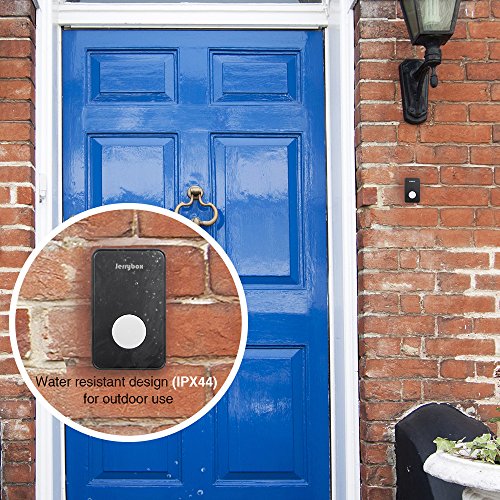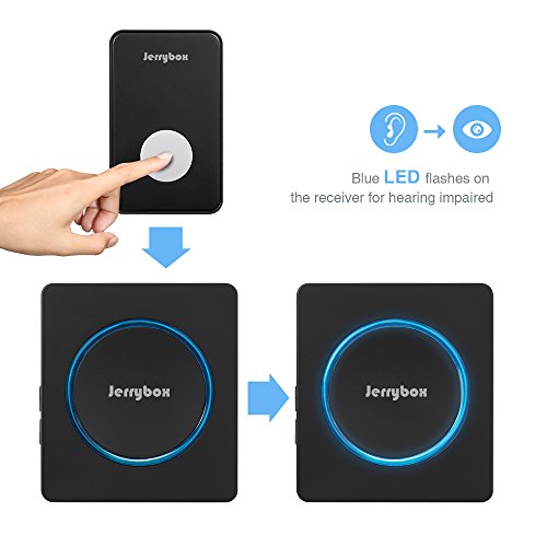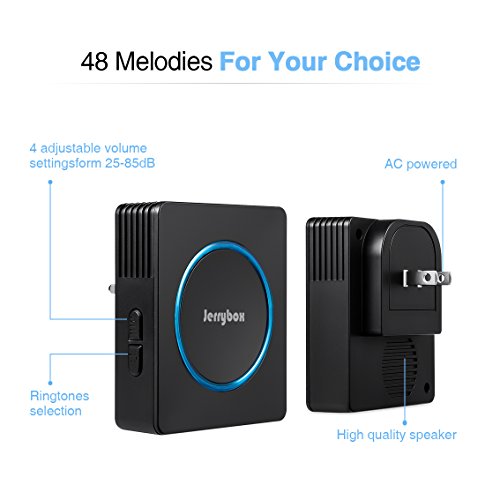 Jerrybox DT52 Wireless Doorbell Kit with 2 Chime Units 48 Melodies 1000ft Working Range (Black)