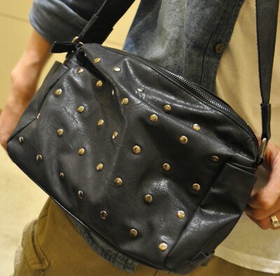 特 色新款韩版林弯弯黑色男包铆钉单肩斜跨包男士斜挎包个性潮包
