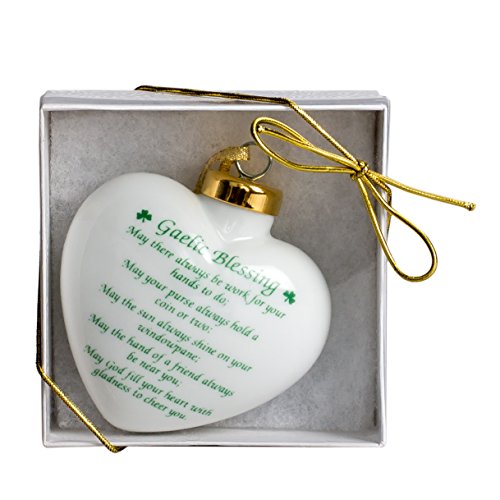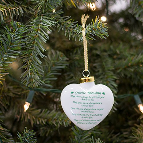 Gaelic Blessing Shamrock White Puffy Heart Porcelain Christmas Ornament