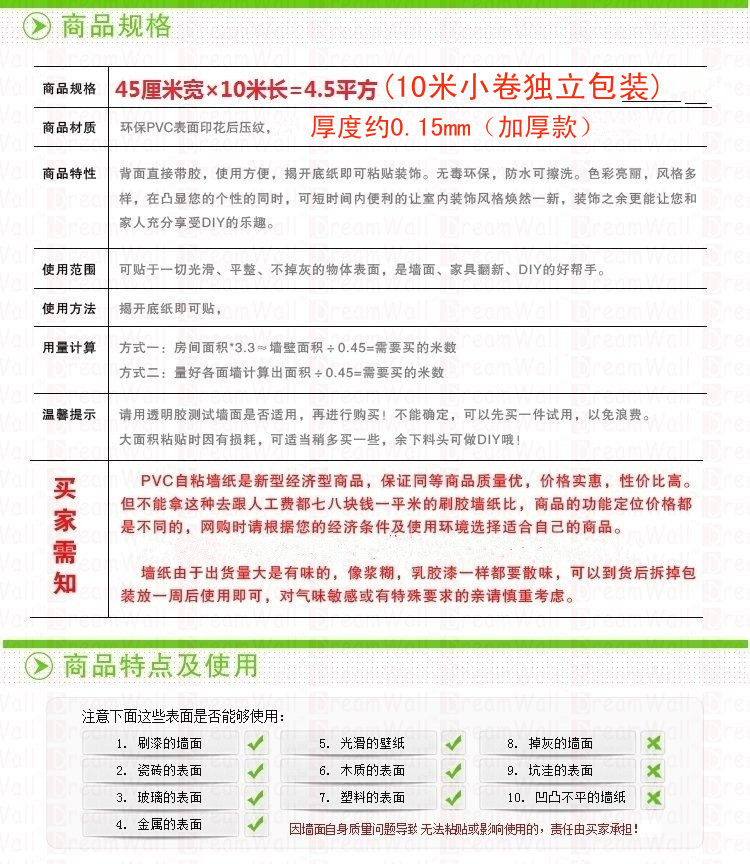 规格:一件长10米,45cm宽一卷 标价为一件的价格厚度8丝 0.1mm厚度
