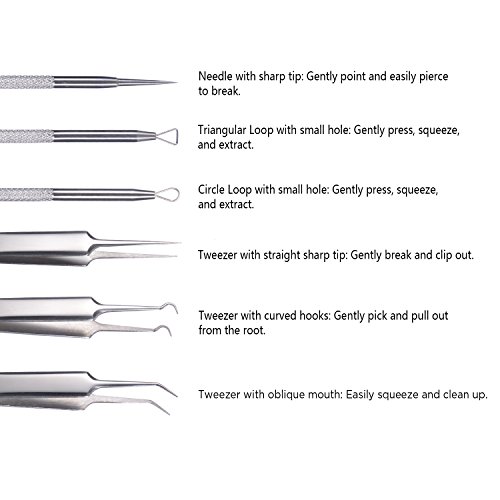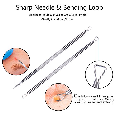 Safe and effective! Thanks to 410 stainless steel, these blackhead and comedones acne extractor tool kits are germ-free and a hygienic way to remove impurities and eradicate skin problems. Daily frequent use is not recommended. Disinfect tools before and after use.