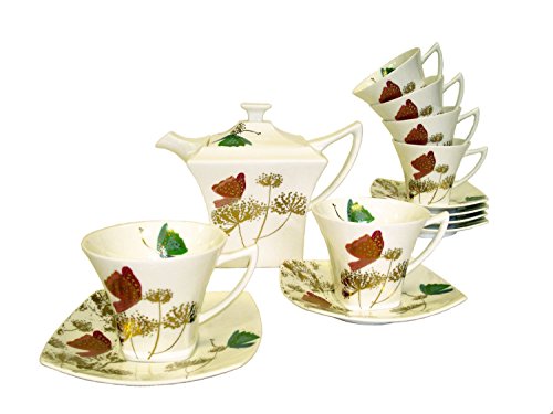 -. Title : 13- Piece Chun Hao Tea Set, Butterfly on Bloom