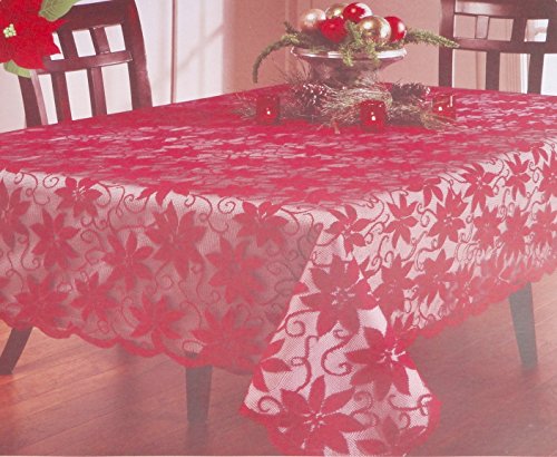 -. Binding : Kitchen -. Brand : Benson Mills -. Color : Red -. Feature : Benson Mills Christmas Red Poinsettia Flower Lace Easy Care Fabric Tablecloth Overlay Linens / This beautiful Poinsettia Ribbon's Christmas Lace Tablecloth has a quality lace finish that is not only festive and seasonal but also machine washable. / This fabric tablecloth is made of 100% polyester and is machine washable in the gentle cycle. / Available in 52" x 70" Oblong, 60" x 84" Oblong, 60" x 104" Oblong, 60" x 120" Oblong, 70" Round. / The tablecloth is shown over a white tablecloth to better show the poinsettia flowers pattern. -. Label : Benson Mills -. Manufacturer : Benson Mills -. Model : Red Lace Poinsettia Ribbons -. PackageQuantity : 1 -. ProductGroup : Home -. ProductTypeName : HOME -. Publisher : Benson Mills -. Studio : Benson Mills -. Title : Benson Mills Valentine's Day / Christmas Red Poinsettia Flower Floral Lace Easy Care Fabric Tablecloth Overlay Linens