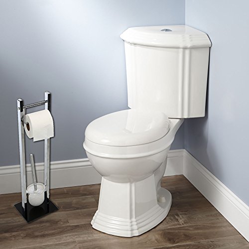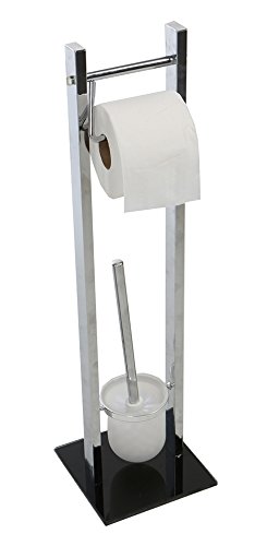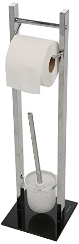 Mind Reader Bathroom Toilet Tissue Paper Roll Storage Holder Stand with Toilet Brush Holder, Silver