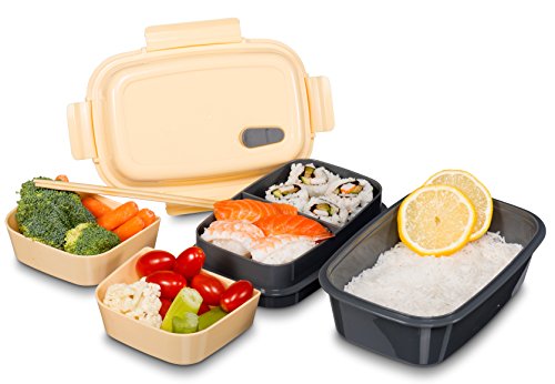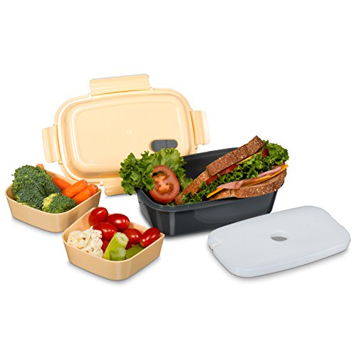 BENTO LUNCH BOX - BPA free plastic, Leak Proof, Multi-Compartment, Detachable Microwave Vent, Convertible Food Container with Re-freezable Ice Pack