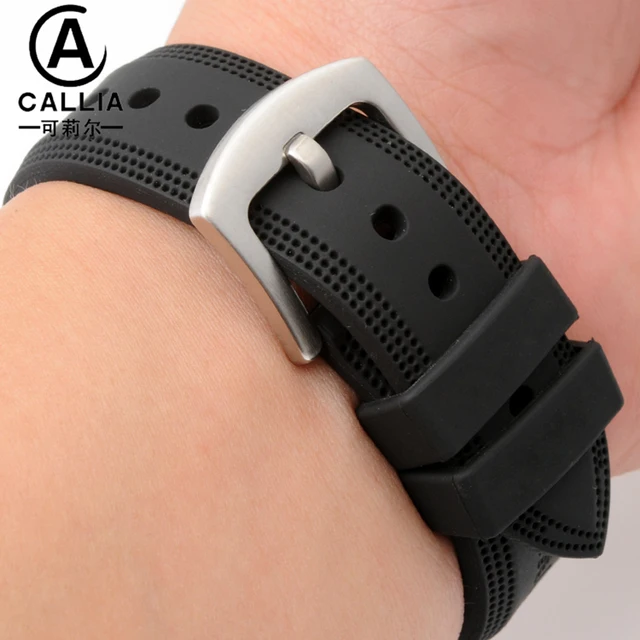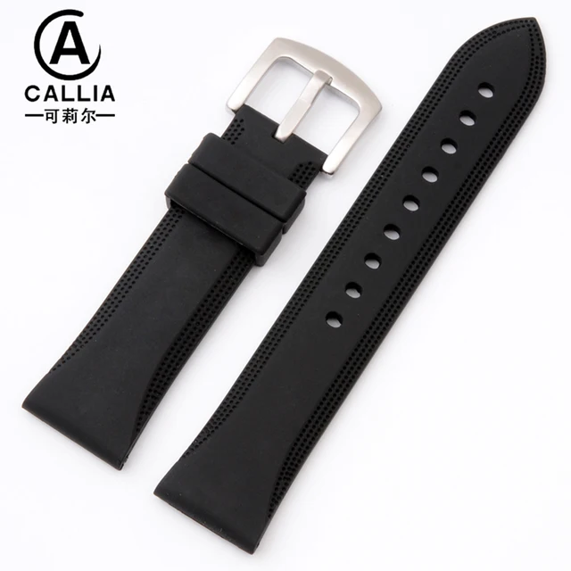 | [해외]22 미리메터 블랙 고품질 실리콘 시계 스트랩 밴드 Ar 방수 시계 스테인레스 스틸 핀 액세서리 버클 |