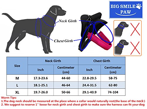 Studio : BIG SMILE PAW Publisher : BIG SMILE PAW Binding : Misc. Product Description Product:Dog harness with handle Features: *Comfortable:chest hook and loop closure to help prevent gaping and shifting and improve effectiveness,and the chest strap rests across your dog's chest which prevents gagging,choking and coughing, chest strap is complementary color to make it easier to put on *Reflective:Reflective:nylon strap is stitched with reflective thread ,it can make the dog and owner much more visible in the traffic *Good control:foam handle on back more soft and comfortable to have more control and easier to grap than strap loop handle when getting in and out of the car *Durable and sturdy construction,2 adjustment points provide custom fit to your dog *Size Chart: M:neck girth 17.3~23.6inch/44~60cm;chest girth:22.8~29.5inch/58~75cm L:neck girth 18.1~25.1inch/46~64cm;chest girth:24.4~31.5inch/62~80cm XL:neck girth 19.7~26inch/50~66cm;chest girth:29.1~40.9inch/74~104cm