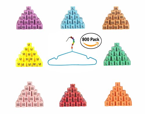 -. Feature : STAY ON WELL AND GO ON EASY: Many customers have experience size markers popping out of hangers easily. We re-made our module to produce perfect fit for wire hook hangers or plastic hangers with 4mm(0.15in) hook. They are easy to clip on and stay well on hangers. / BIG SAVING AND BEAUTIFUL ASSORTED COLORS: There are total 800 pieces of size markers. XXS=100, XS=100, XXS=100, M=100, L=100, XL=100, XXL=100, XXX=100. Each size has a unique color. / HELP CUSTOMERS IDENTIFY THE RIGHT SIZE EASILY: The size marks help customers find their desired sizes for clothes much more quickly than ever. This greatly improve customers' shopping experience and happiness. / PREMIUM QUALITY: They were made of ABS plastic and have two side P.R.Inted with size marks.They are durable and intended to be last for years. / 100% SATISFACTION GUARANTEE: Buy with confidence for 100% satisfaction or money back within 30 days. Try them out for 30 days, not satisfied? Get full refund easily.