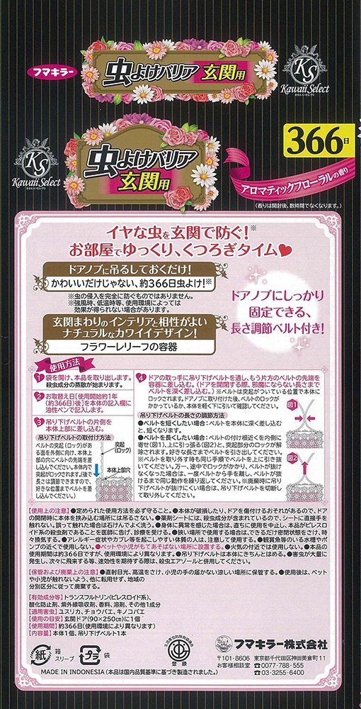 Active ingredient etc: Transfluthrin (pyrethroid type), antioxidant, ultraviolet absorber, fragrance, solvent, other 1 component