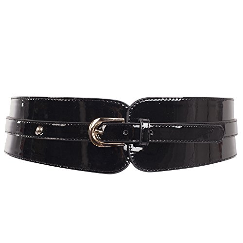 Women's Shiny Leather Feel Elastic Belts with Single Buckle in Various Colours