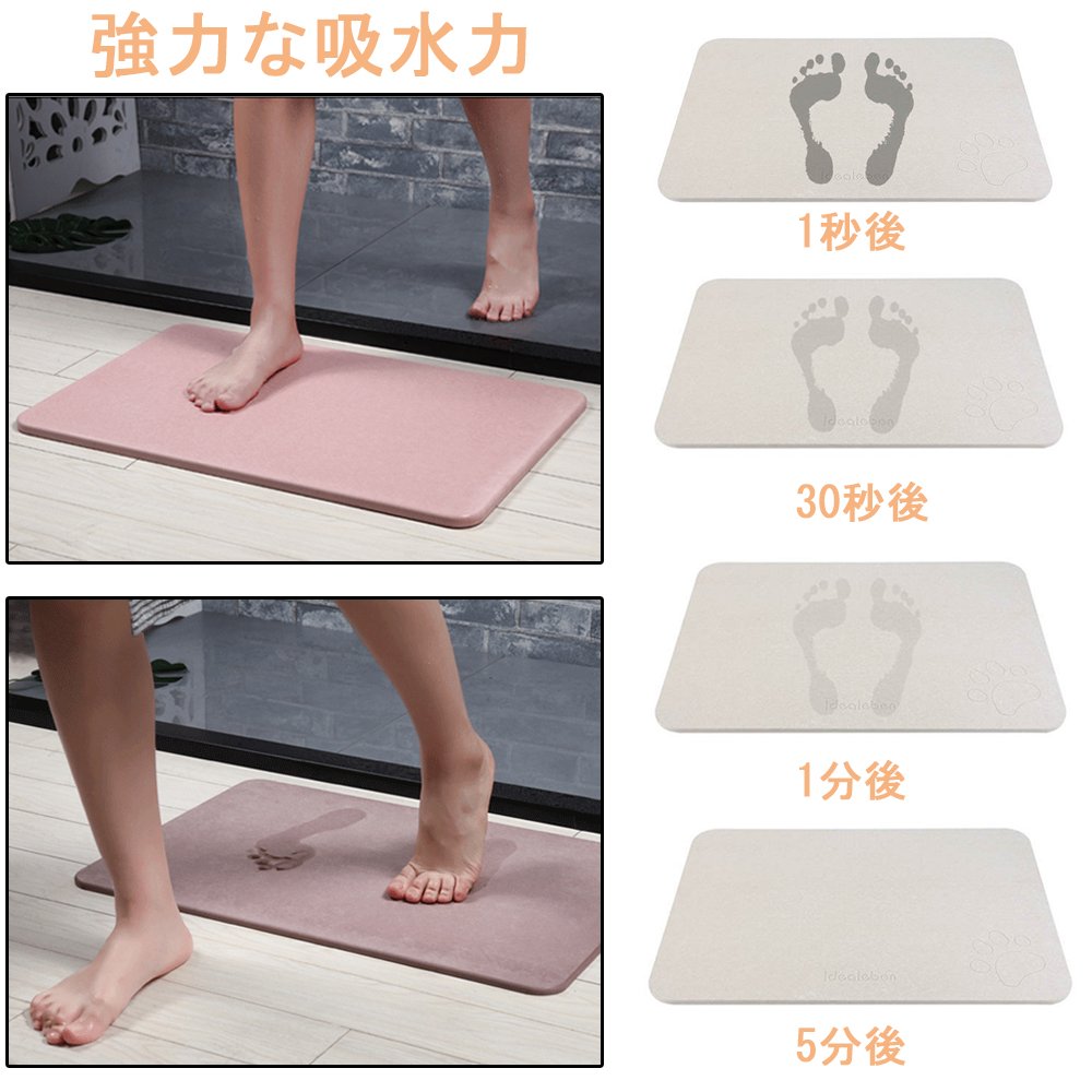 Diatomaceous earth foot Diatomaceous earth of the bath mat has countless fine holes on the surface, it has the action of adsorbing the gas of the odorous component, making it difficult for the unpleasant mold odor to smell.