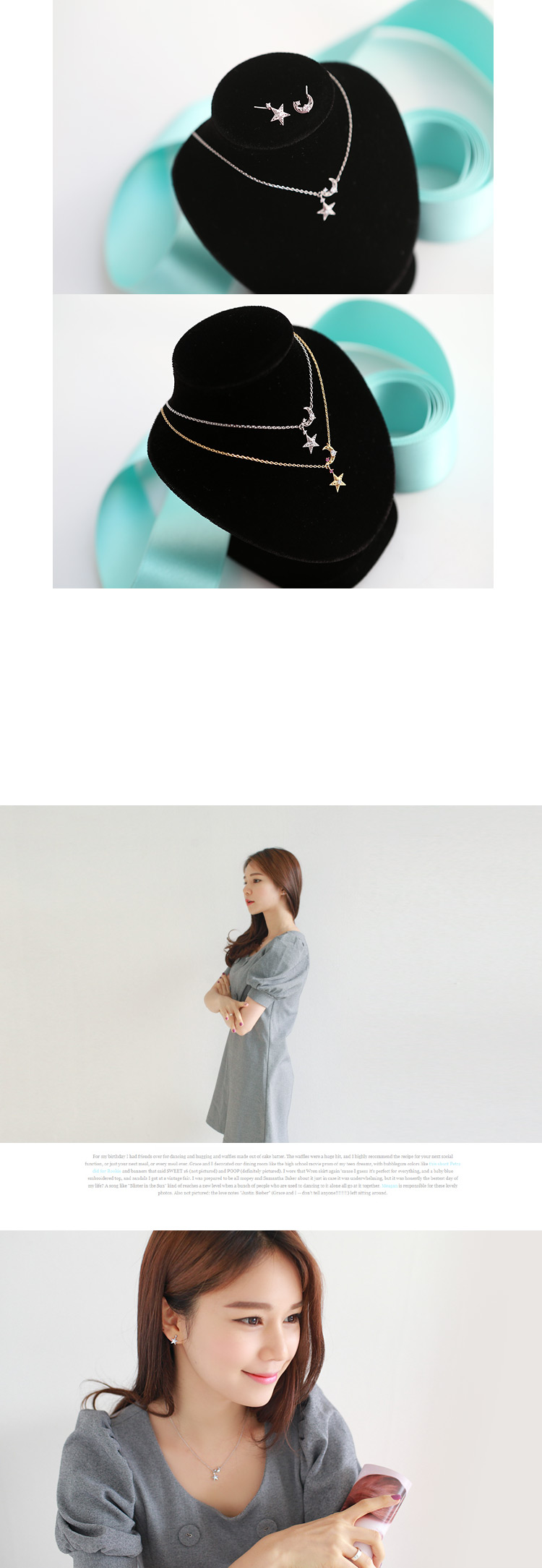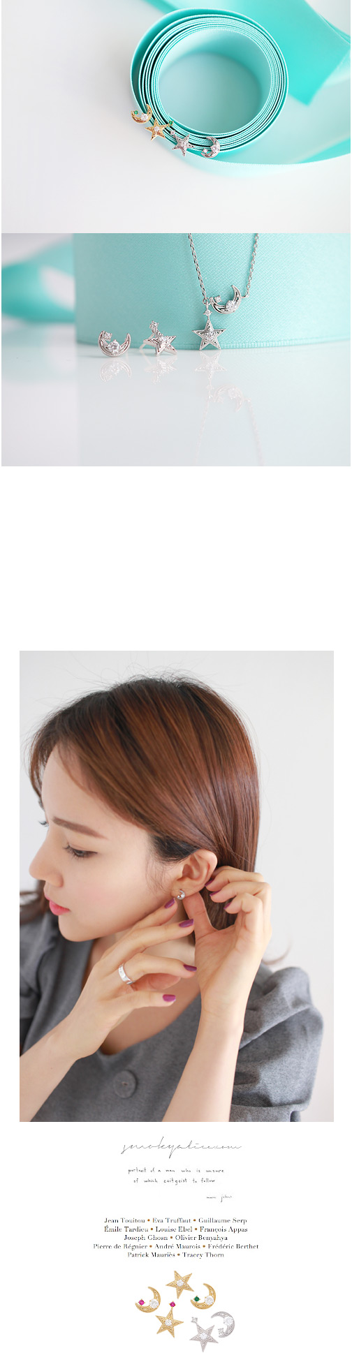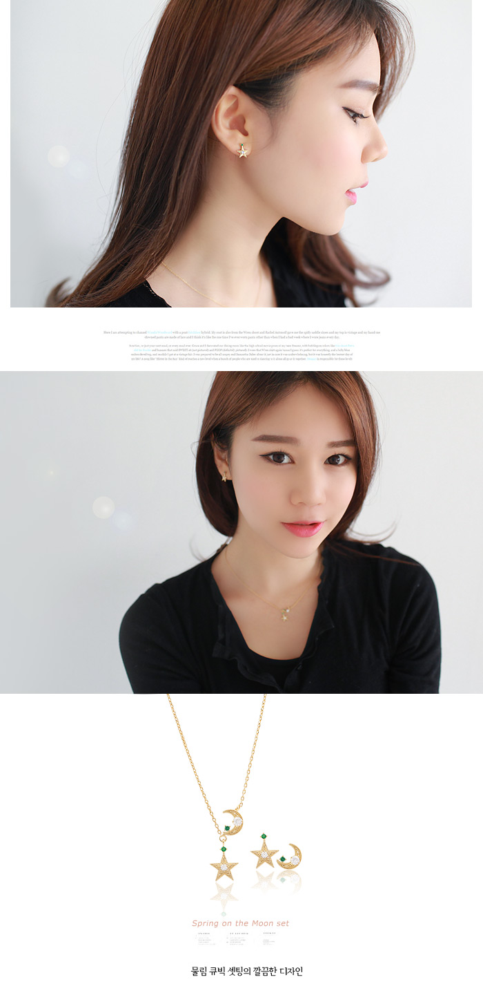-구성 : 귀걸이 + 목걸이 -소재 : 화이트도금, 골드도금, 큐빅, 92.5% 실버침 -사이즈 : 가로 0.9cm * 세로 1.1cm 목걸이 체인길이 약 41cm + 여유체인 3cm