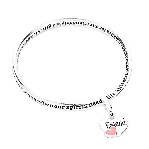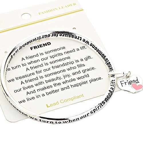 -. Binding : Jewelry -. Brand : Rosemarie Collections -. Department : womens -. Feature : Bangle bracelet inscribed with a lovely friendship p with a heart charm / Inscription reads "A friend is someone we turn to when our spirits need a lift. a friend is someone we treasure for our friendship is a gift A friend is someone who fills our lives with beauty, joy, and grace. and makes the whole world we live in a better and happier place." / 2.5 inch diameter, fits small to medium wrists / Makes a great gift for any special friends in your life / Packaged in a lovely gift box -. Label : Rosemarie Collections -. Manufacturer : Rosemarie Collections -. Model : SW-3728-0XXX -. MPN : SW-3728-0XXX -. PartNumber : SW-3728-0XXX -. ProductGroup : Jewelry -. ProductTypeName : FASHIONNECKLACEBRACELETANKLET -. Publisher : Rosemarie Collections -. Studio : Rosemarie Collections -. Title : Rosemarie Collections Women's Friendship Bracelet with Heart Charm "Friends make the world a better place"