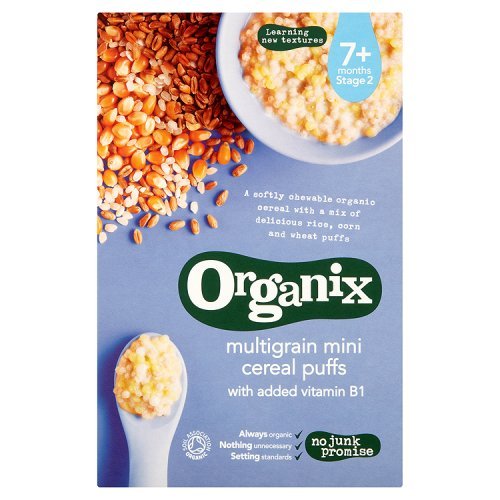 -. Feature : A soft, easy to chew texture / Organic cereal with a mix of delicious rice, corn and wheat puffs / A chunky breakfast / Organix multigrain mini puffs