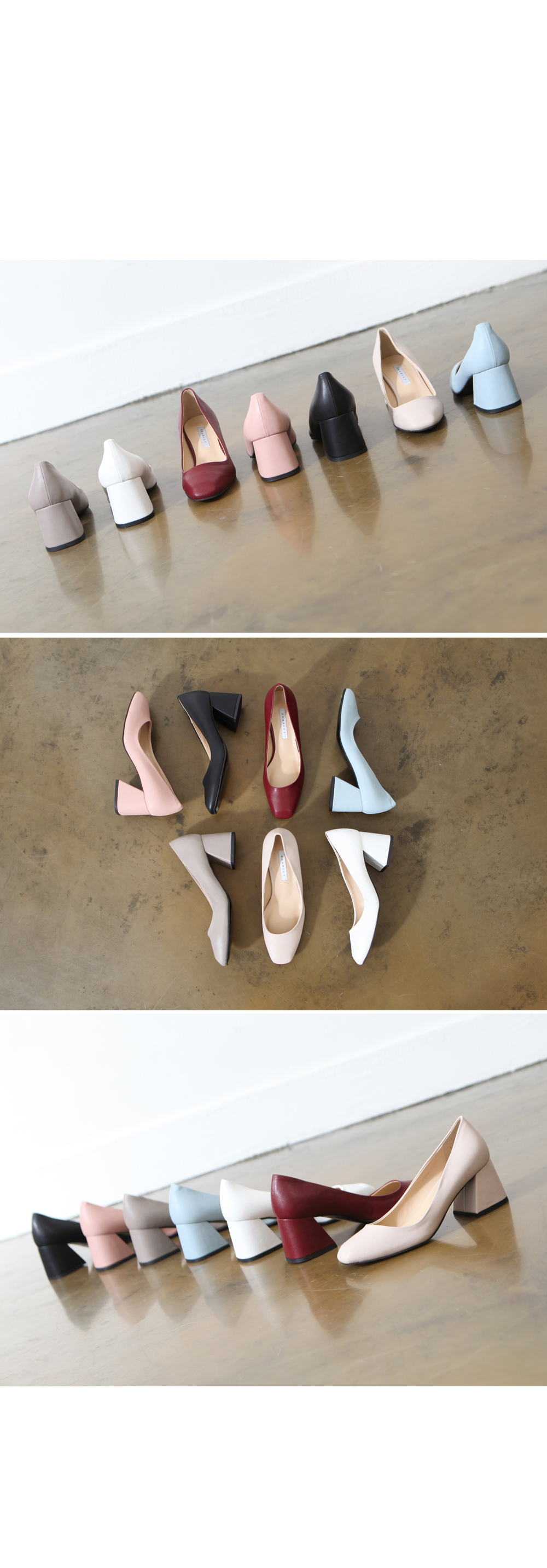 Pastel square nostalgic line Mineral tongue Middle heel 7color pumps