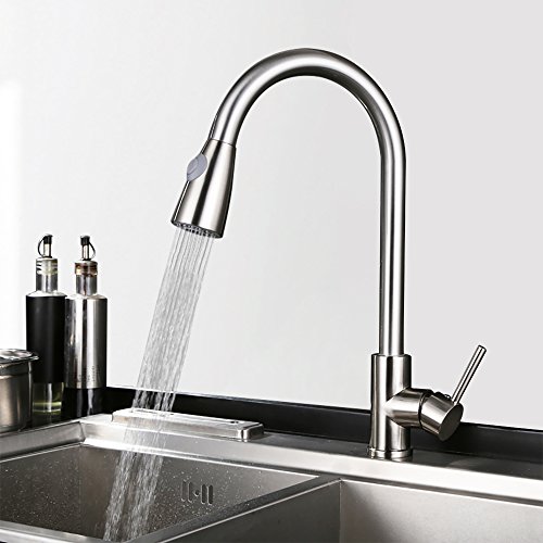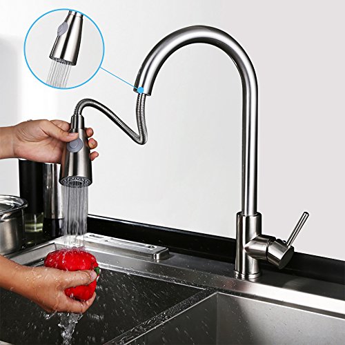 - EXTREMELY DURABLE NICKEL BRUSH FINISH:APOSHION kitchen faucet is upgraded with better performance and durability.APOSHION kitchen faucet is treated with durable nickel brush finish which resists tarnish and corrosion from even daily use.No worries about the problem of sprayer head anymore! The surface of kitchen sink faucet looks stylish,modern, fashionable.