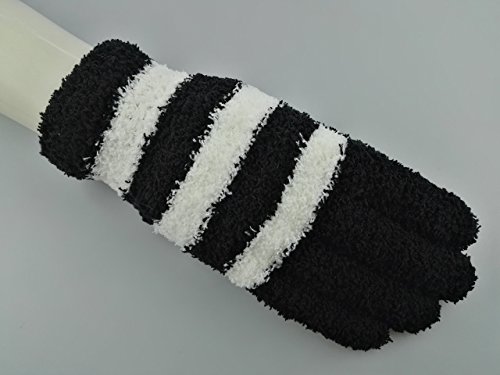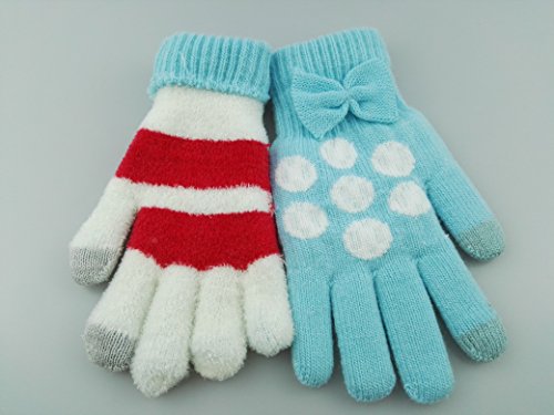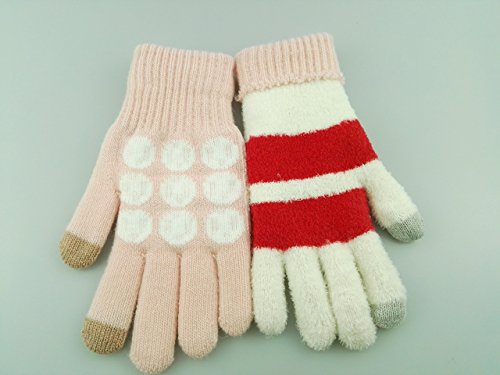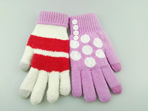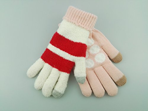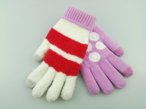 Binding : Apparel Product Description These gloves are soft, cozy, fun and youthful. The polka-dot gloves have a unique, thick, lining that is festive and red with white stripes. The adult gloves polka-dot gloves also have touchscreen index finger and thumb. However, due to the thick linings the touchscreen is not good for long texts. The touchscreen works but not as well as your finger ... of course. The non-polka-dot (microfiber) gloves do not have lining. Great for stocking stuffers and gifts. These are knit gloves and therefore they are not great to use in wet snow. They are stylish, high quality and affordable. Comes in a variety of colors, bows and buttons. Checkout our kids gloves with polka dots to match mommy. For another style choose from our soft and fuzzy microfiber collection. In black with white stripes or white with black band. Ideal for more temperate days. Add a pop of color and accessorize the cold weather in style. 0