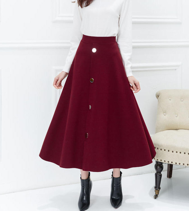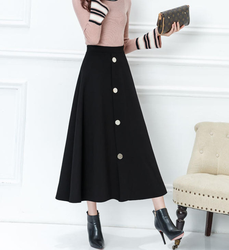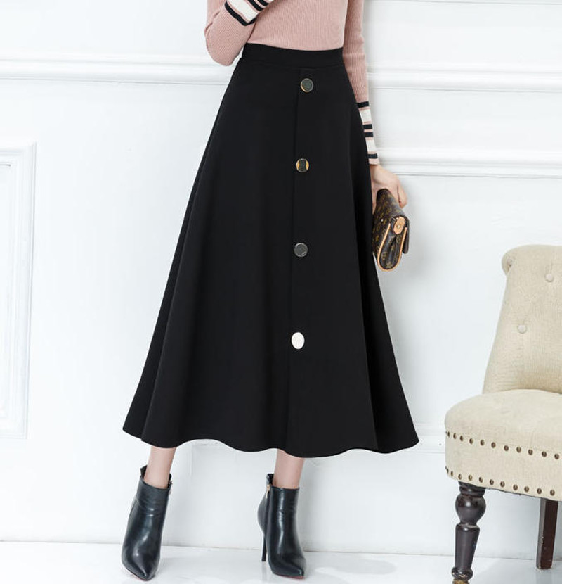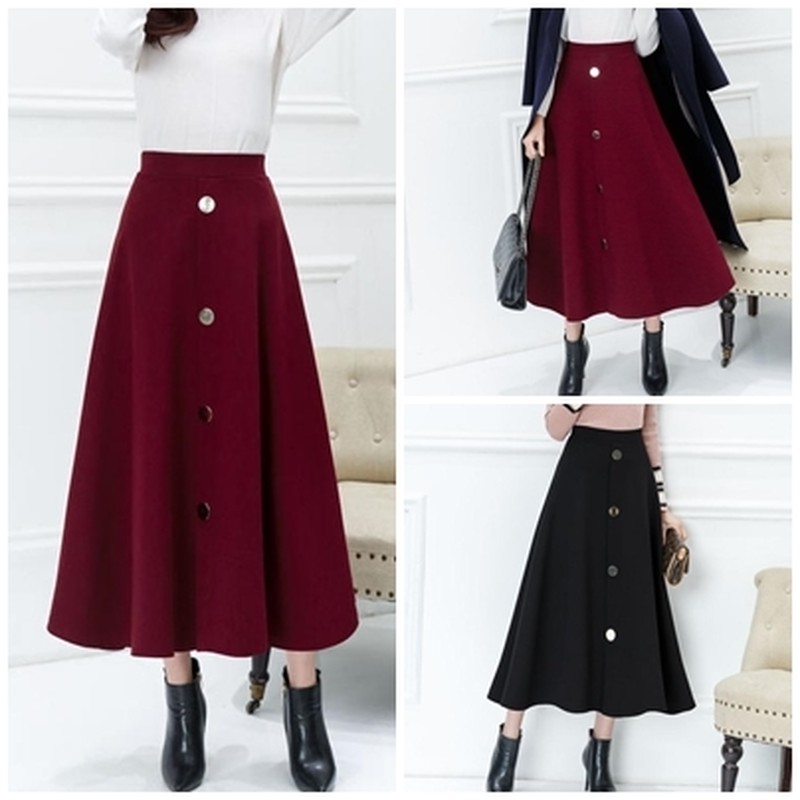 ♢ポイント♢ 上品な女性を演出してくれるフレアスカートです。 大きめの前ボタンがポイントです♪