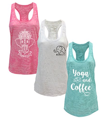 -. Title : Tough Cookie's Women's Burnout Elephant Lotus Small Yoga Coffee Tank Top 3 Pack