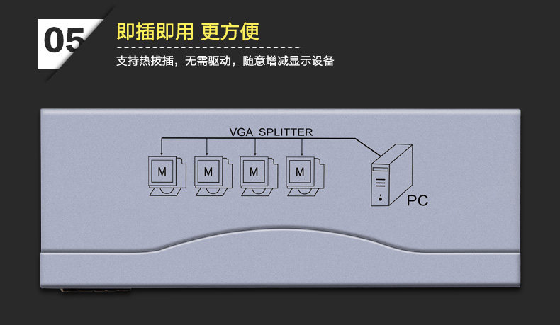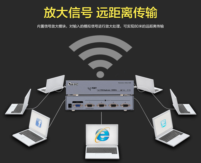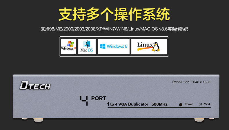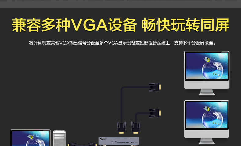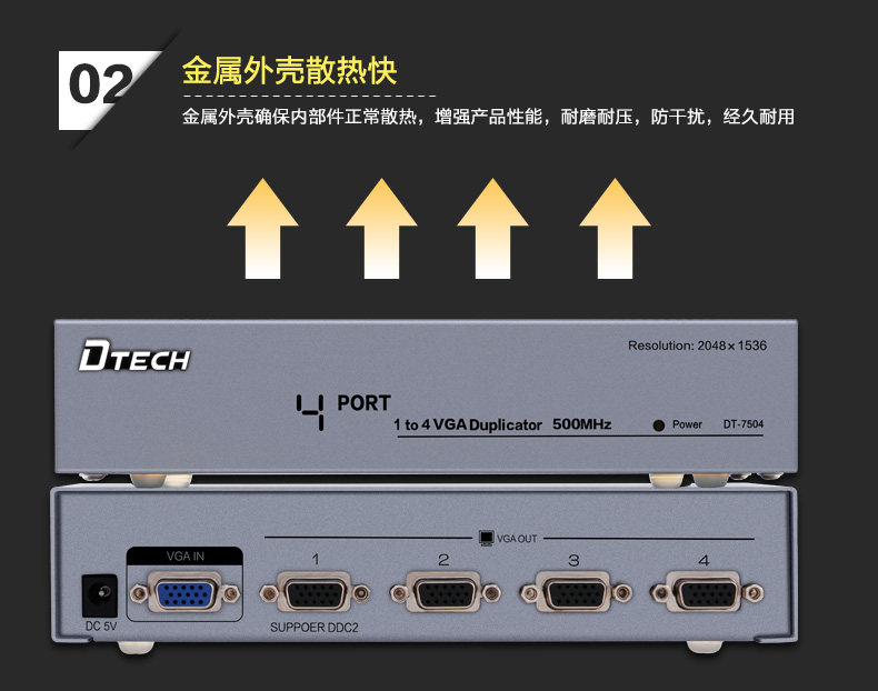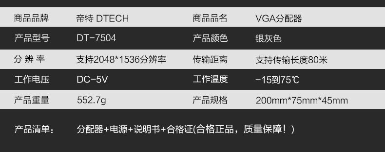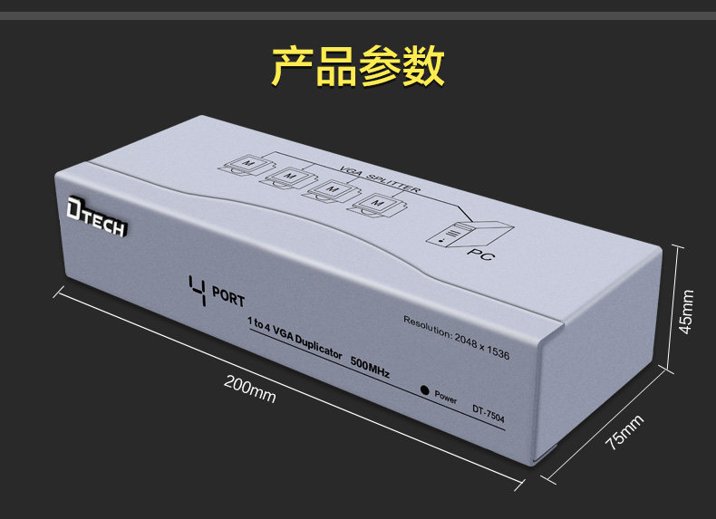 帝特DT-7504 vga分配器一分4 高清显示器电脑VGA分配器一进四出
