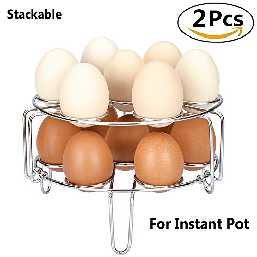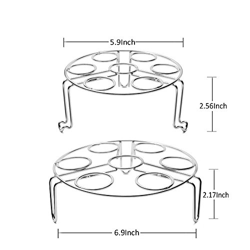 Stackable Type: the upper one(6.5x6.5x2.56 in)has grooved legs to make them stay firmly on the lower one (6.9x6.9x2.17 in), so you can boil at most 14 eggs at the same time in a few minutes, and easily keep eggs stay put in your instant pot, pressure cooker and other pots, never broke the eggs again.