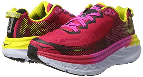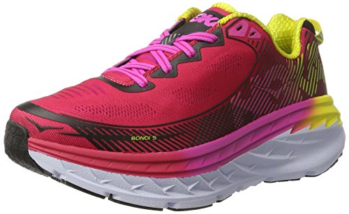 Studio : DECKERS Outdoor Corp. Publisher : DECKERS Outdoor Corp. Binding : Shoes Product Description Designed to run on hard artificial surfaces, the BONDI 5 offers you exceptional comfort over time and just enough grip to get you on easy trails if you feel like it. Latest version of the revolutionary model Bondi, the "5" is the most cushioned HOKA ONE ONE shoes for the road. With improved tip, breathability, support and compression properties, it offers a smooth, cushioned and balanced stroke. A ComfortFrame upper and a padded tongue complement the EVA midsole and curved sole profile underneath the metas starting at the back of the foot to provide unmatched comfort. Hoka Bondi 5 Women's Running Shoes Breathable Mesh Upper The upper of the Bondi 5 is made from a Breathable mesh which sits comfortably against the foot and allows cool air to flow into the shoe at the same time as releasing warm air out of the shoe, allowing the foot to remain as cool, dry and comfortable as possible. 3D Print structure is also used throughout the shoe upper which is made from a superbly lightweight material and offers a precise fit for a secure and comfortable wear. The Ortholite molded insole has been added inside of the shoe which offers a plush underfoot feel and extra cushioning and support. Meta-Rocker Midsole The Early Stage Meta-Rocker chosen for the midsole is specifically designed with a low heel-to-toe differential and works like a rocking chair for your foot which allows the foot to be guided effectively through the natural gait cycle. A plush EVA material has also been used in the construction of the midsole which offers long-lasting cushioning and comfort. A moderate heel bevel has been added to provide a smooth roll through the foots natural gait cycle for a smooth heel to toe transition. Zonal Rubber Outsole The outsole is made from a durable rubber which will keep the bottom of the shoe from wearing away easily. Zonal rubber has been strategically placed in key areas along the outsole that are more likely to wear to give it extra durability, making sure you can turn t 0