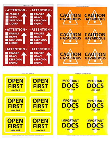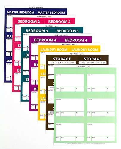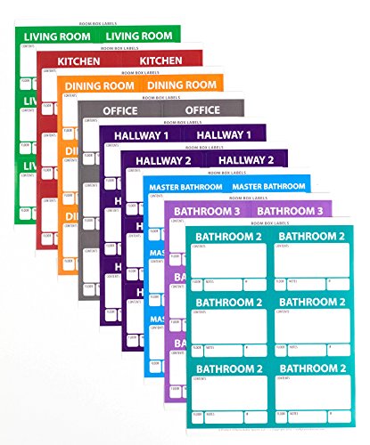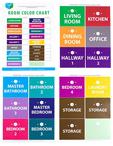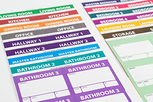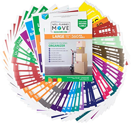 Well Planned Move - Color Coded Moving Labels - LARGE - 360 Labels, 4 Bedroom House, 1 Blank Set, Attention and Priority Labels 4" x 3.33" Each