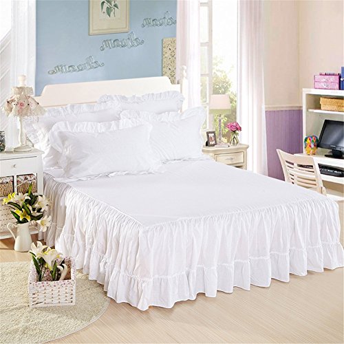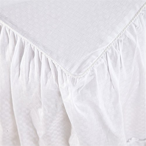 100% Cotton Ruffled Bed Skirt 17 inch Drop White Dust Ruffle with Platform White Queen