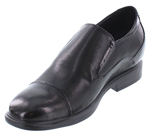 Binding : Apparel Product Description (All sizes listed are US men sizes unless otherwise stated.) premium leather men's oxford is the ultimate elevator shoe for the man who seeks an extra three inch height. This lightweight convenient lace-less design features a hidden elastic gore. It's a classic semi-square slip-on cap toe with micro-perforated accent detailing all around as well as cement construction. Elegantly stitched for extra durability and comfort, the quality leather upper offers a lightly padded collar for a more sophisticated look which makes for a more formal feel. Not only does the durable soft built-in elevated insole provide adequate room for your foot, it also has enough cushion for comfort that may last all day. 0