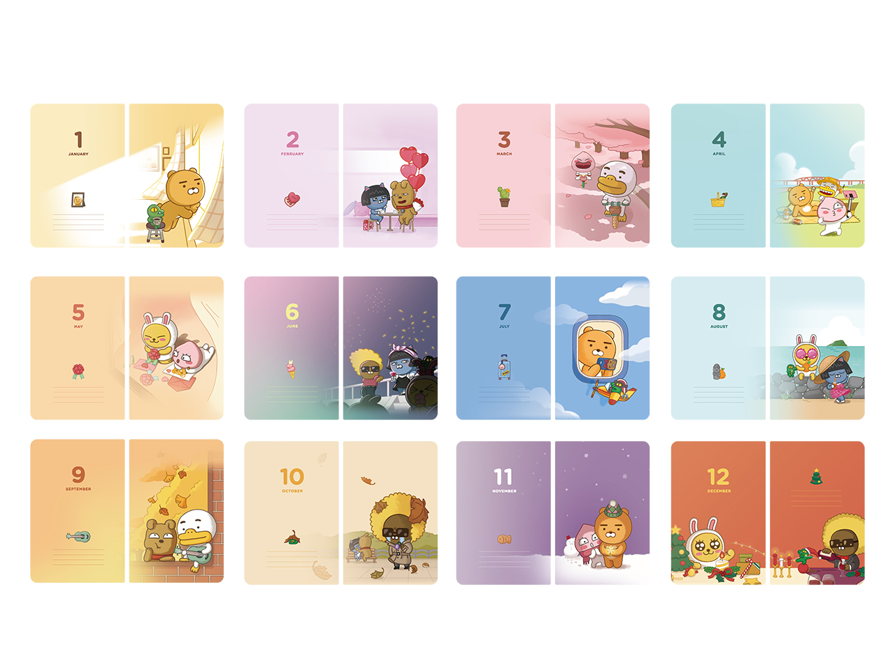 월별 프렌즈들의 일상이 담겨져 있는 위트있는 아트웍으로 한달 한달이 새로울 거에요!