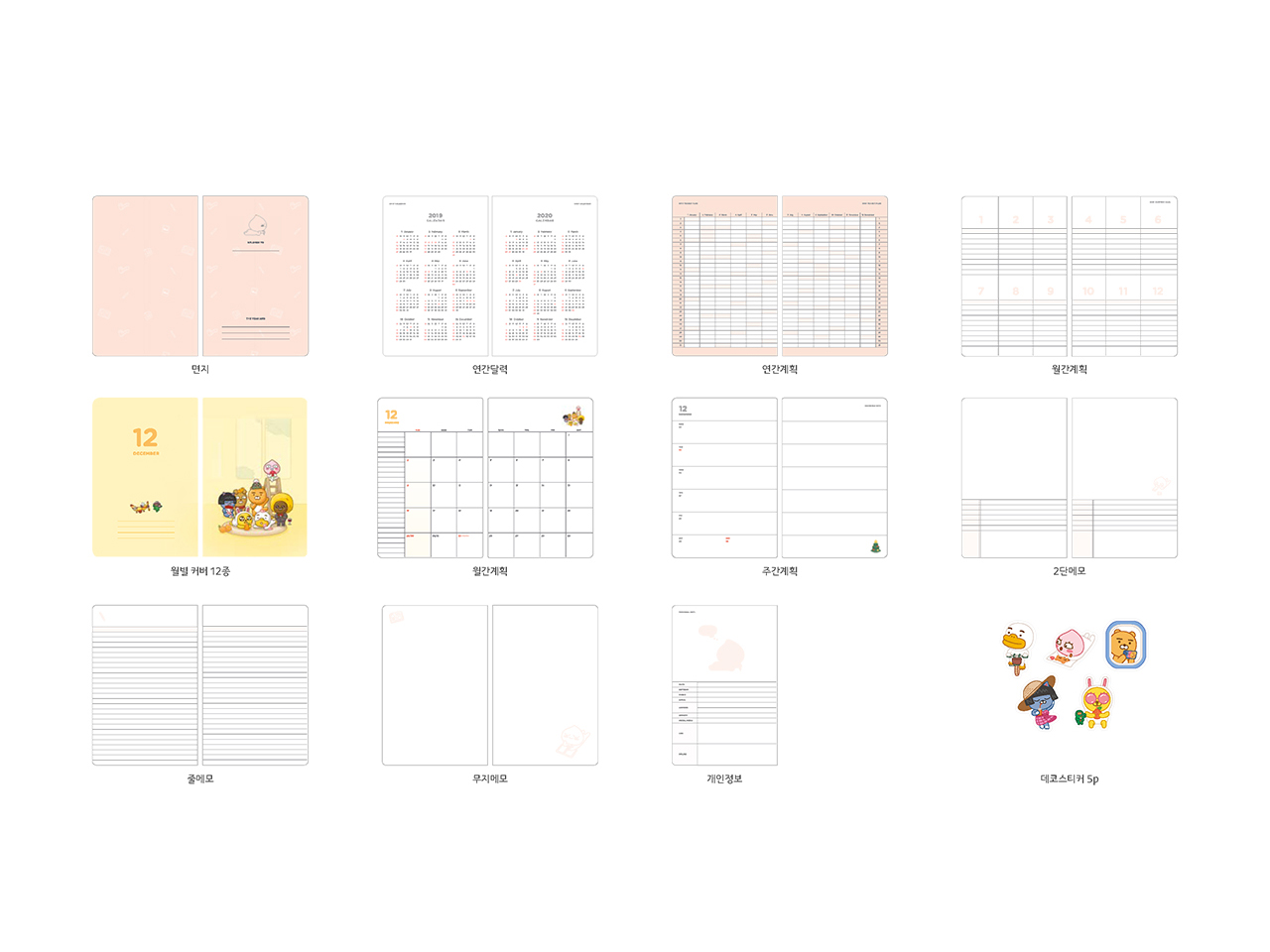 다이어리를 사면 제공되는 라이언, 어피치, 튜브, 콘, 무지, 네오 대왕 스티커까지~