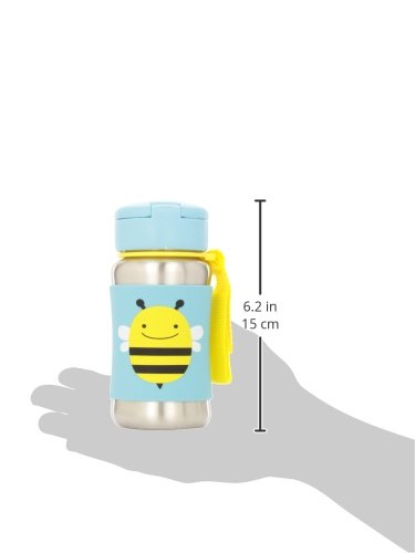 Skip Hop Baby Zoo Little Kid and Toddler Feeding Travel-To-Go Insulated Stainless Steel Straw Bottle, 12 oz, Brooklyn Bee
