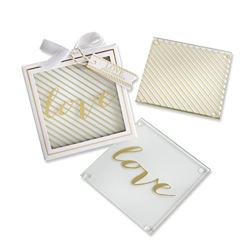 Product DescriptionFor a favor guests will love, choose Kate Aspen's beautiful set of two Gold Love Glass Coasters, available in two elegant designs.0