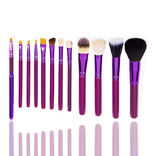 -. Title : Unimeix? Professional 12 PCS Cosmetic Makeup Brush Set With Leather Cup Holder (Red Purple Green Sapphire Black) (Purple)