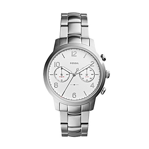 Watch Sizing Guide Get a clean finish with this ultra-sleek Fossil® watch! Stainless steel case. Stainless steel bracelet with fold-over, double push-button release. Round face. Three-hand analog display with quartz movement. Dial features silver-tone hands and hour markers, two subdials, minute track, and Fossil detailing. Chronograph functionality. Water resistant 5 ATM. Display case included. Imported. Measurements: Case Height: 37 mm Case Width: 37 mm Case Depth: 10 mm Band Width: 3⁄10 in Band Circumference/Length: 8 in Weight: 2.4 oz This product may have a manufacturer's warranty. Please visit the manufacturer's website or contact us at warranty@support.zappos.com for full manufacturer warranty details.Feature
