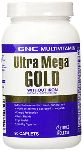 -. Feature : GNC Ultra Mega Gold without Iron Multivitamin, Caplets 90 ea / GNC Quality