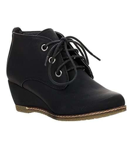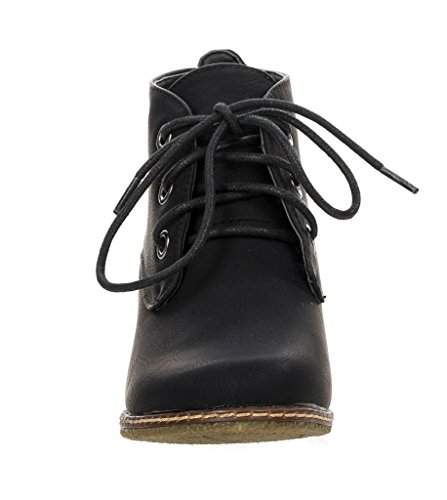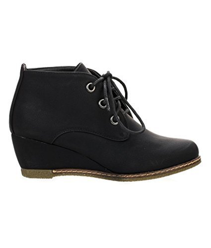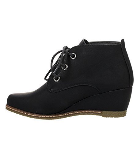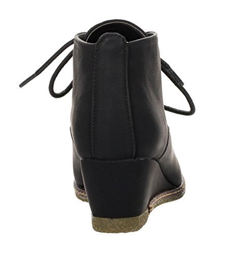 Nature Breeze Willow-01 Women's Black Lace Up Faux Leather Ankle Wedge Boots,6.5 B(M) US,Black PU-01