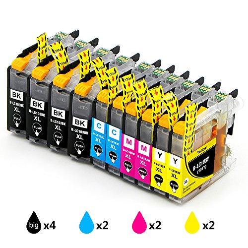 -. Feature : Compatible with Brother MFC-J450DW MFC-J470DW MFC-J475DW MFC-J4310DW MFC-J4410DW MFC-J4510DW MFC-J4610DW MFC-J4710DW MFC-J6520DW MFC-J6720DW MFC-J6920DW MFC-J285DW MFC-J650DW MFC-J870DW MFC-J875DW MFC-J245 MFC-J450DW P.R.Inter; DCP-J152W P.R.Inter / What is included: 4 LC103BK XL, 2 LC103C XL, 2 LC103M XL, 2 LC103Y XL Galada Ink Cartridges (Total 10 Pack) / High Yield: 600 Pages for LC103XL each color at 5% coverage based on ISO9001 / Offering 100% Satisfaction and ONE Year Money Back Guarantee on All Galada brand ink cartridges and supplies which covers any quality, reliability and performance issues / Galada aims to pursue optimal quality at affordable P.R.Ice. All ink cartridges with 100% P.R.Inting test provide you with exceptional P.R.Inting results. Individual package for every ink cartridge and Eco-friendly material & techniques used in every component of the cartridge