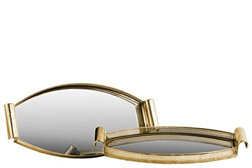 Urban Trends Elliptical Tray with Mirror Surface and Handle Pierced Metal Finish (Set of 2), Gold