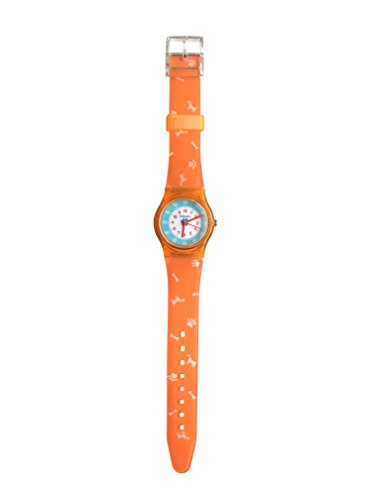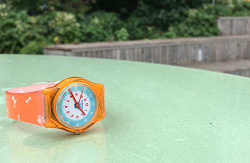 Made for kids who love dogs, Wags will have them going canine crazy! The strap is covered in all things pooch, with the world's tiniest paw print on the face. Minutes and hours are separated to help young learners tell time. They will hooooowwwllll with delight :-) Details: Japanese Quartz Movement Battery-Powered Plastic Case, Steel Back Flexible Silicon Band 3ATM Water Resistant 8.3 in (21cm) long, fits wrists from 5.5" to 7" in diameter Boxed and perfect to give as a gift Returns/Refunds: If you change your mind, you can send it back within 14 days (in original condition) for a full refund. Please see our full refund policy for more details.Feature