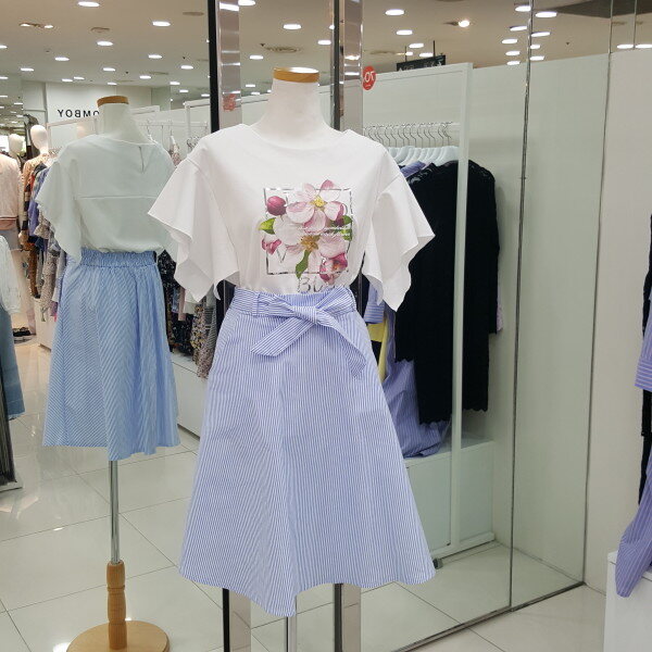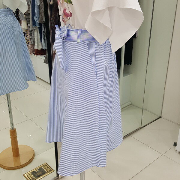 리본벨트의 체크 플레어 스커트 입니다 뒷허리밴드 연출로 편하게 연출하기에 여성스러운 디자인입니다