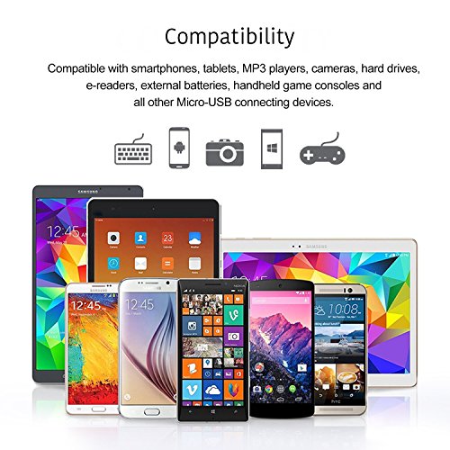 Universal Compatibility: Samsung Note 3/4/5, Galaxy S3/S4/S6/S7/Edge, HTC, Motorola, Nexus, Nokia, LG, HP, Sony, Blackberry, Kindle, PS4, PS Vita, Xbox, Nintendo DS, and other Micro-USB compatible devices.