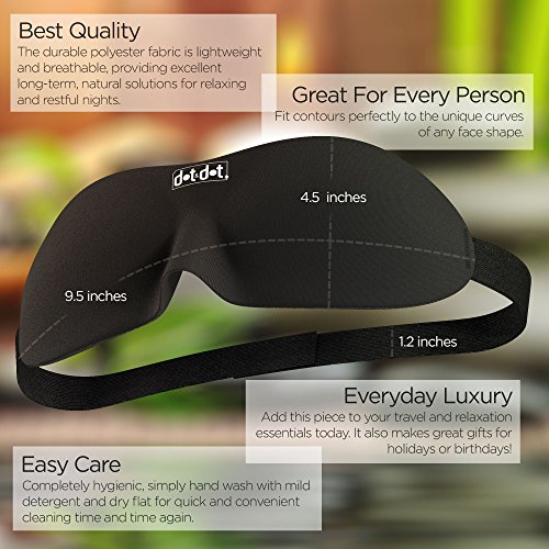 -. Brand : DOT-01 -. Feature : Rest Better - Get restful, deep sleep with this soothing mask with strap. Remedy your sleeplessness by blocking light and distractions for complete relaxation and a good night's rest. / Perfect for Travel - Whether going by airplane, car, or on a cruise these eye shades are the perfect accessory to help you or your kids relax on the way to your destination. Find tranquility on any busy airline or train. / Stress Relief Aid - Cover your face and unwind from a long day of business with yoga or meditation. These natural aids will help you find inner peace and serenity. / Best Quality - The durable polyester fabric is lightweight and breathable, providing excellent long-term, natural solutions for relaxing and restful nights. / Lightweight Design - This light as air, pillow-like contoured design allows air to circulate to your eyes and ensures you can continue blinking easy. -. IsAutographed : 0 -. IsMemorabilia : 0 -. Label : Dot&Dot -. Manufacturer : Dot&Dot -. MPN : TS-SM-1M-BK1 -. PartNumber : TS-SM-1M-BK1 -. ProductGroup : Sports -. ProductTypeName : OUTDOOR_RECREATION_PRODUCT -. Publisher : Dot&Dot -. Studio : Dot&Dot -. Title : Dot&Dot Sleep Mask for a Comfortable Sleep Both at Home and While Travelling