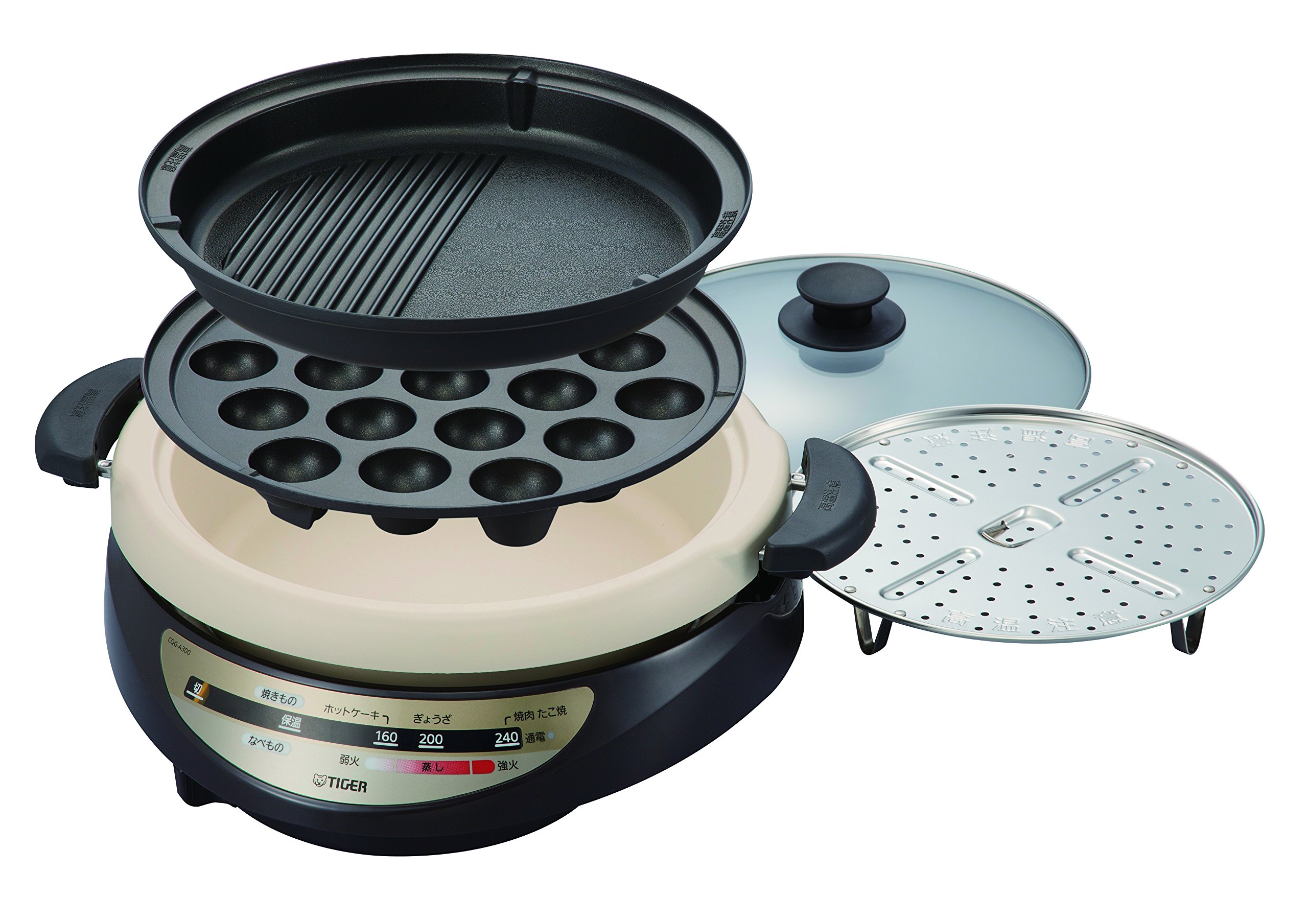* Features: far-red soil pot coating (deep pan) / corrugated plate with vegetable zone / Takoyaki Plate (19 pieces) / steaming stage / far-lasting lasting coat (wave, octopus)